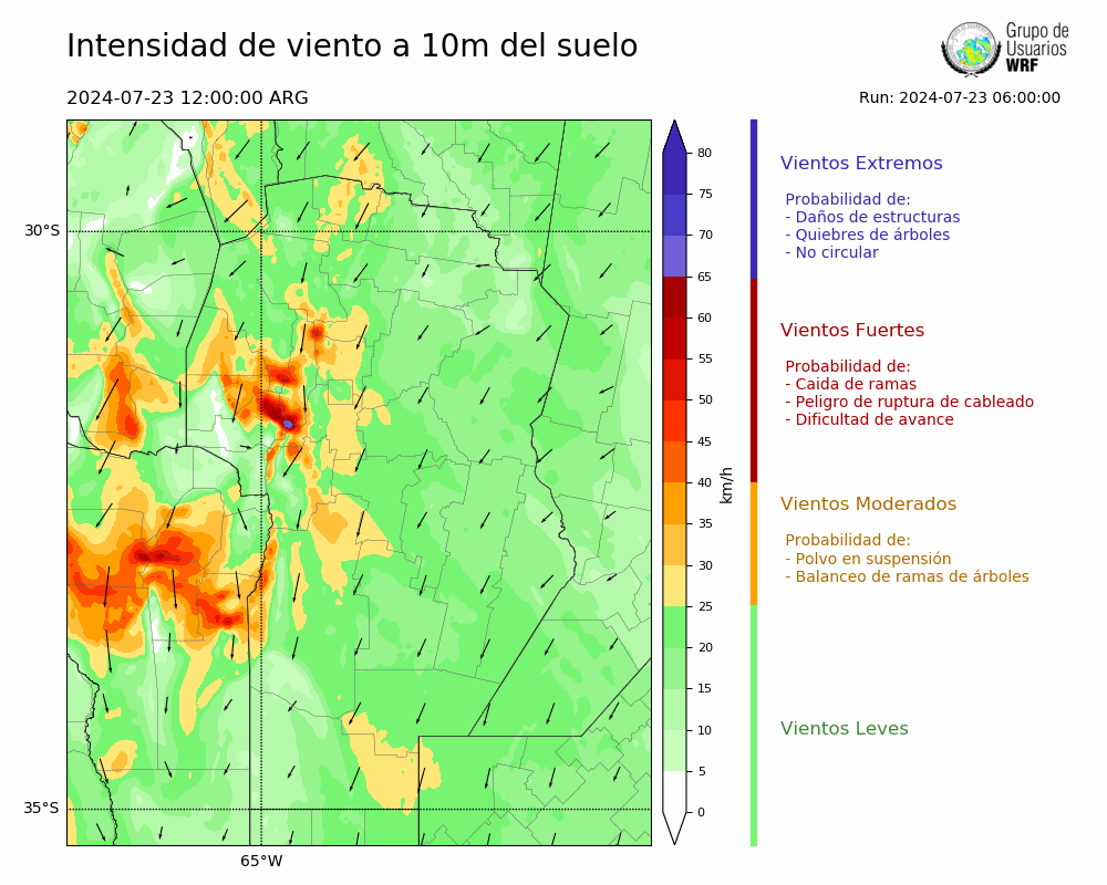 • Intensidad máxima: 17.23 km/h (23/07/2024 18hs.)