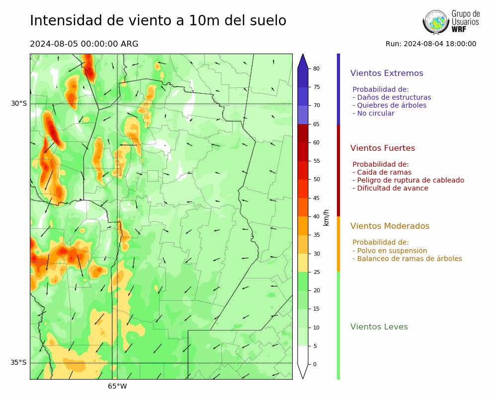 • Intensidad máxima: 17.53 km/h (05/08/2024 11hs.)