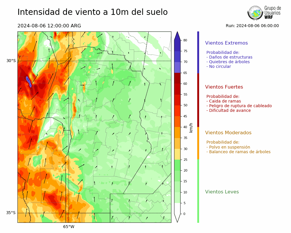 • Intensidad máxima: 26.80 km/h (06/08/2024 19hs.)
