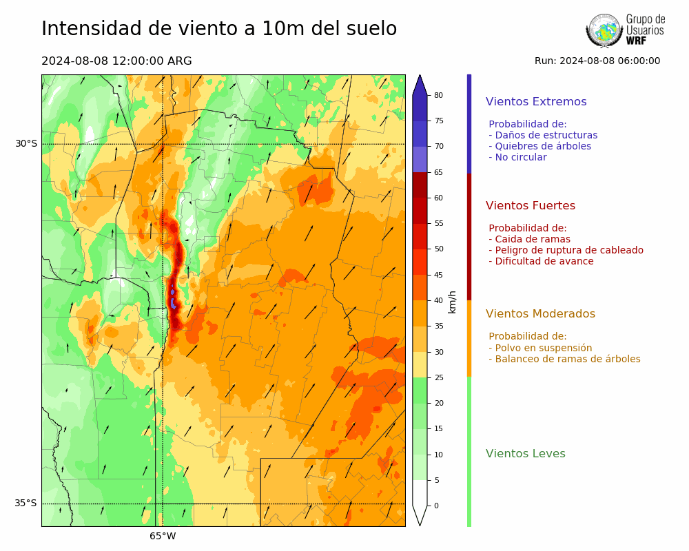 • Intensidad máxima: 17.13 km/h (08/08/2024 14hs.)