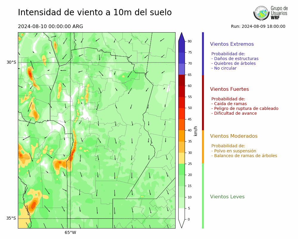 • Intensidad máxima: 33.48 km/h (10/08/2024 00hs.)