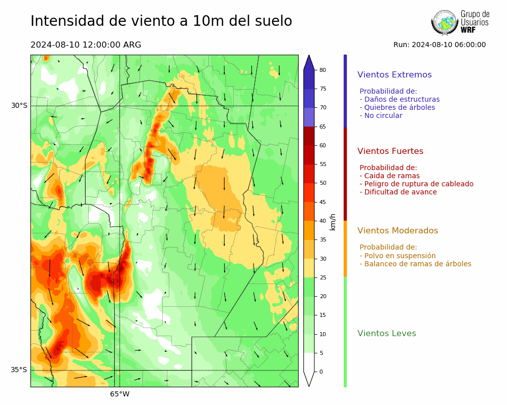 • Intensidad máxima: 17.27 km/h (12/08/2024 20hs.)