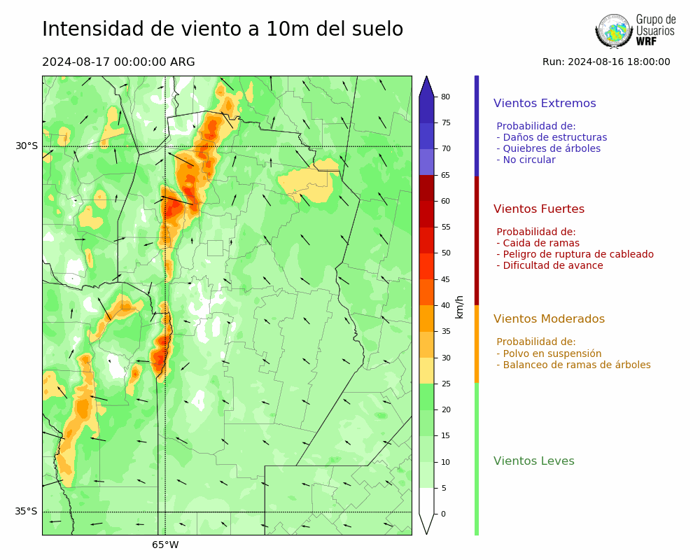 • Intensidad máxima: 17.01 km/h (19/08/2024 07hs.)