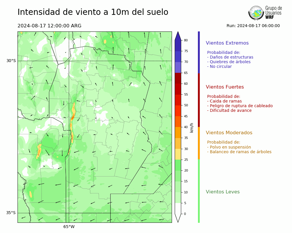 • Intensidad máxima: 16.13 km/h (17/08/2024 18hs.)