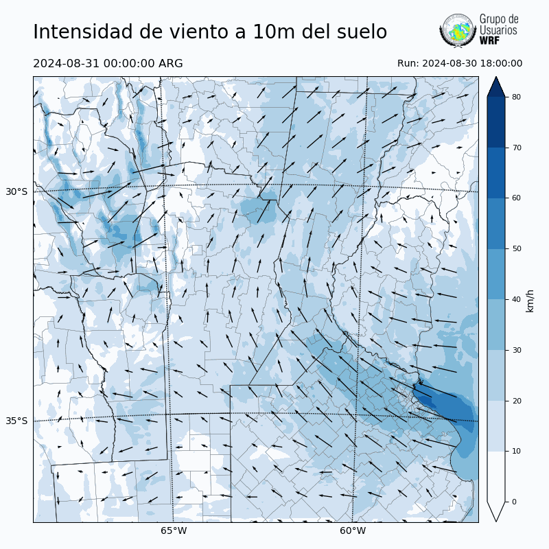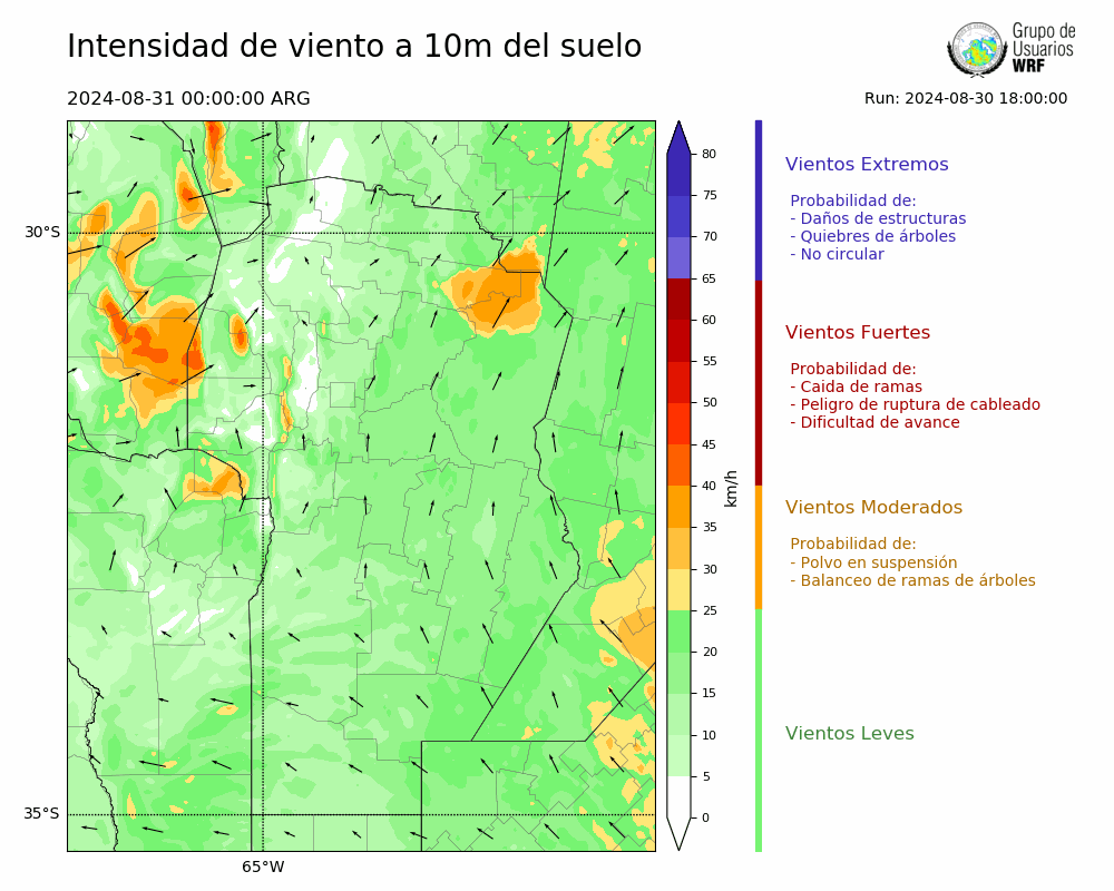 • Intensidad máxima: 14.44 km/h (31/08/2024 05hs.)