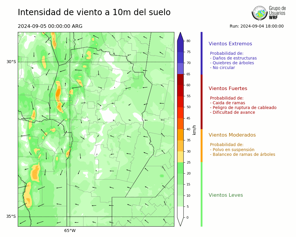 • Intensidad máxima: 28.35 km/h (05/09/2024 10hs.)