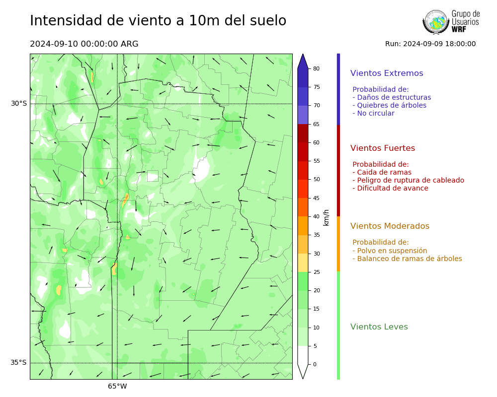 • Intensidad máxima: 32.80 km/h (10/09/2024 11hs.)