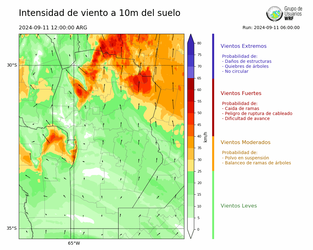 • Intensidad máxima: 13.90 km/h (12/09/2024 22hs.)