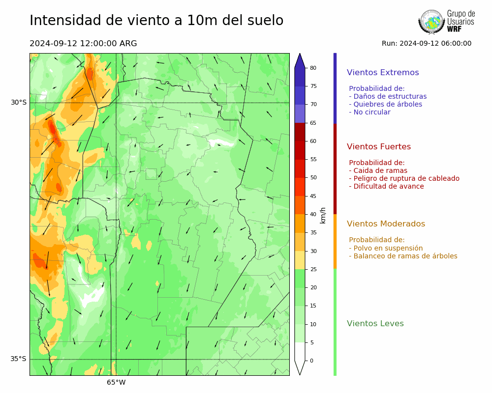 • Intensidad máxima: 14.75 km/h (12/09/2024 17hs.)