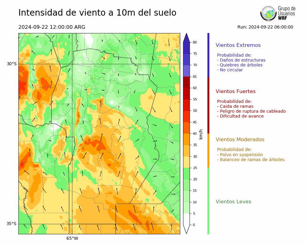 • Intensidad máxima: 12.81 km/h (23/09/2024 19hs.)