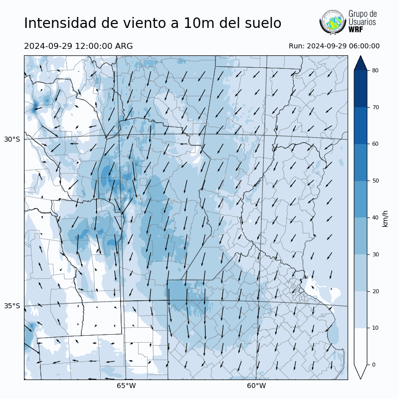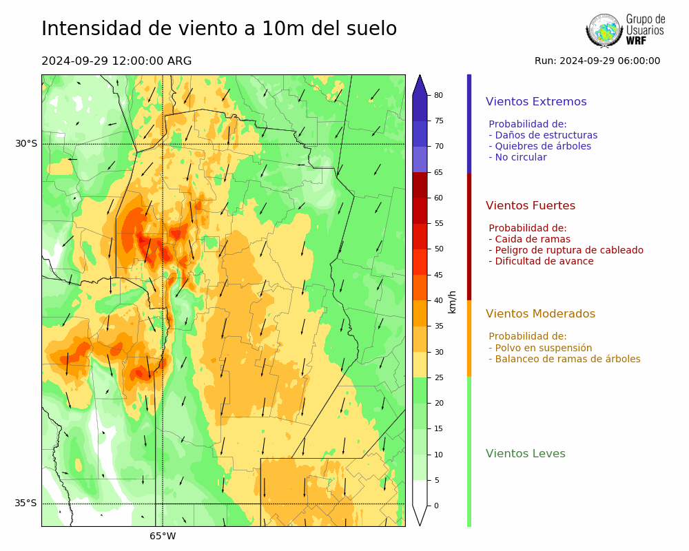 • Intensidad máxima: 15.99 km/h (29/09/2024 22hs.)