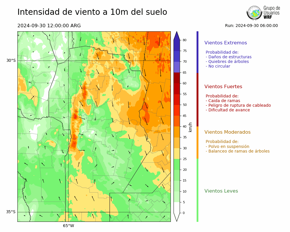 • Intensidad máxima: 50.06 km/h (30/09/2024 14hs.)