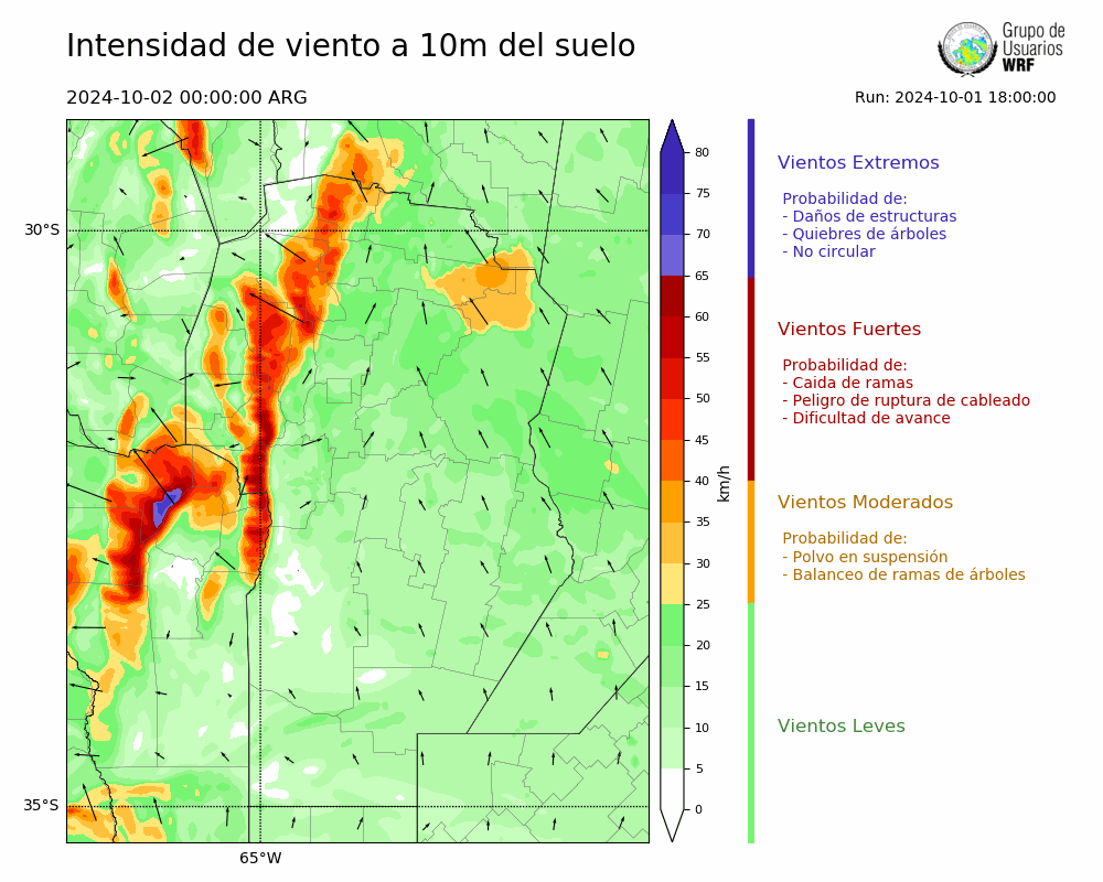 • Intensidad máxima: 17.86 km/h (02/10/2024 00hs.)