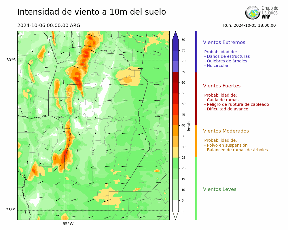 • Intensidad máxima: 18.34 km/h (06/10/2024 00hs.)