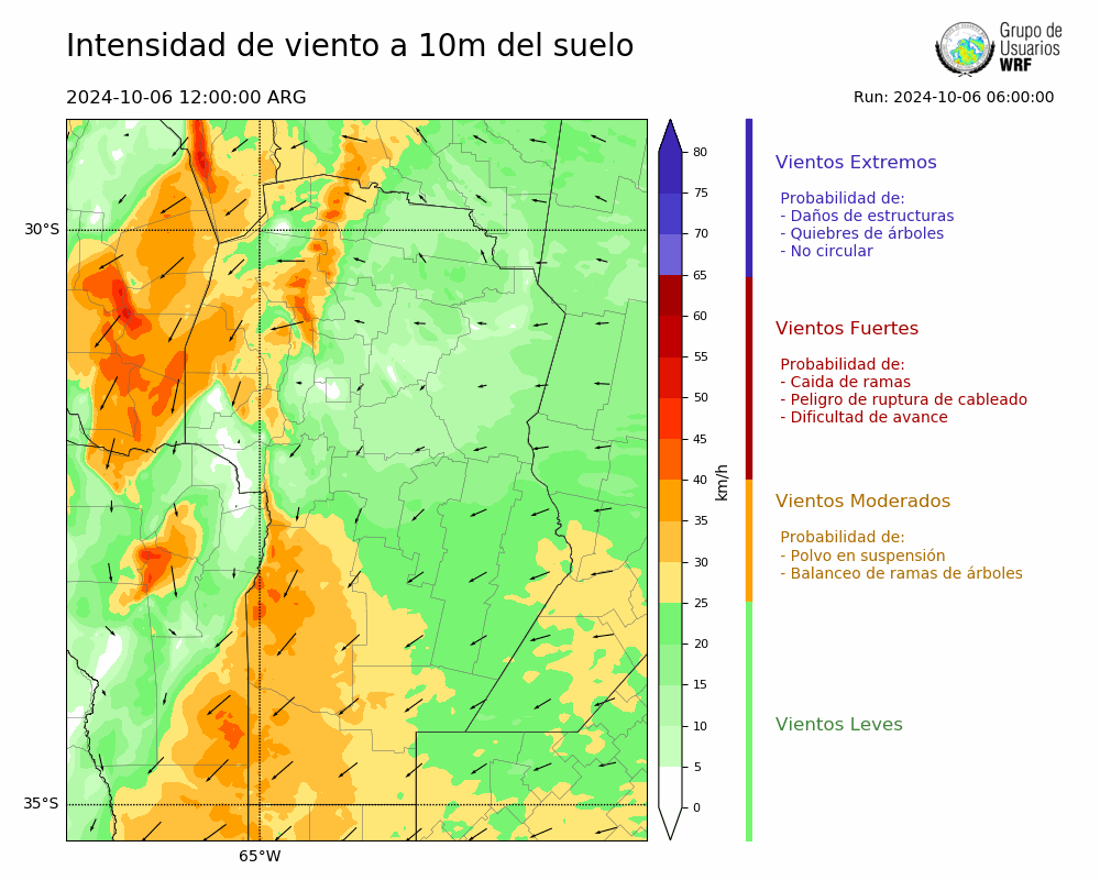 • Intensidad máxima: 22.29 km/h (06/10/2024 16hs.)