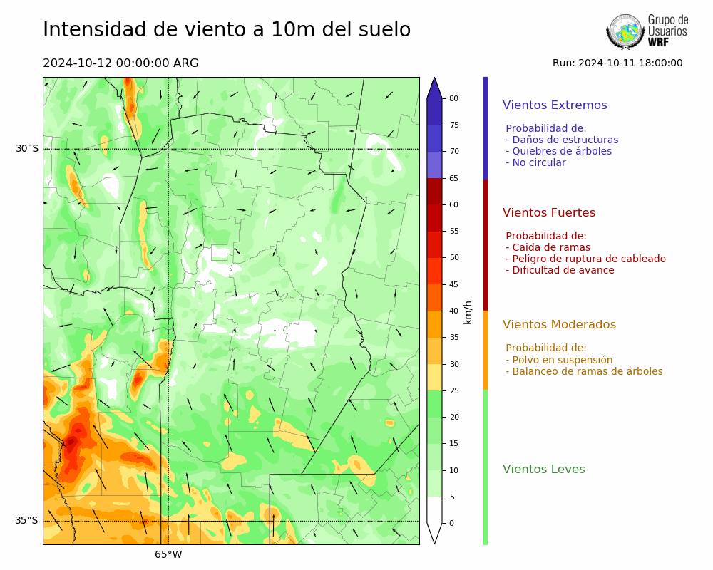 • Intensidad máxima: 28.29 km/h (12/10/2024 05hs.)
