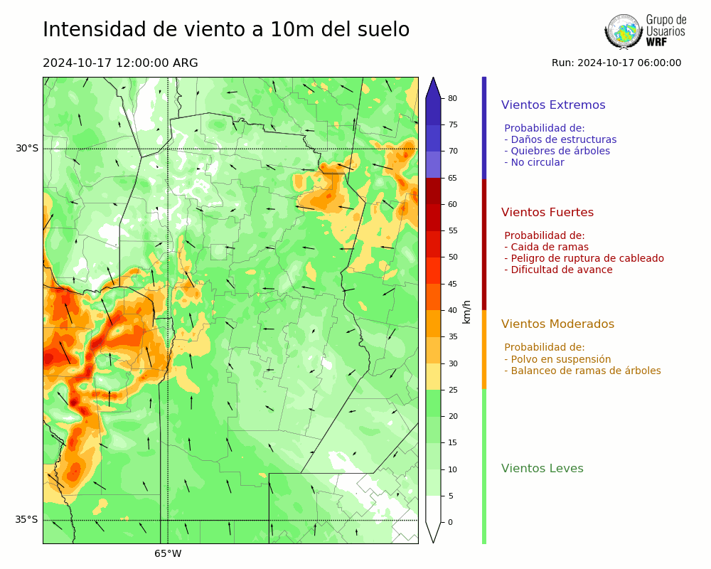 • Intensidad máxima: 31.33 km/h (17/10/2024 14hs.)