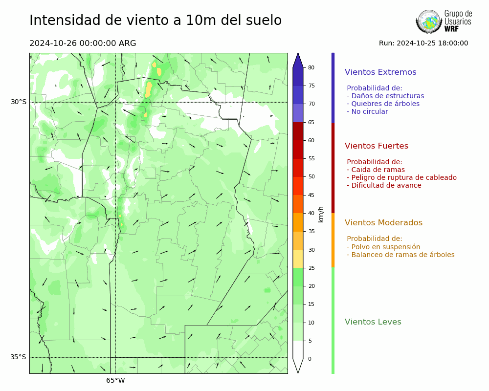 • Intensidad máxima: 6.02 km/h (27/10/2024 02hs.)