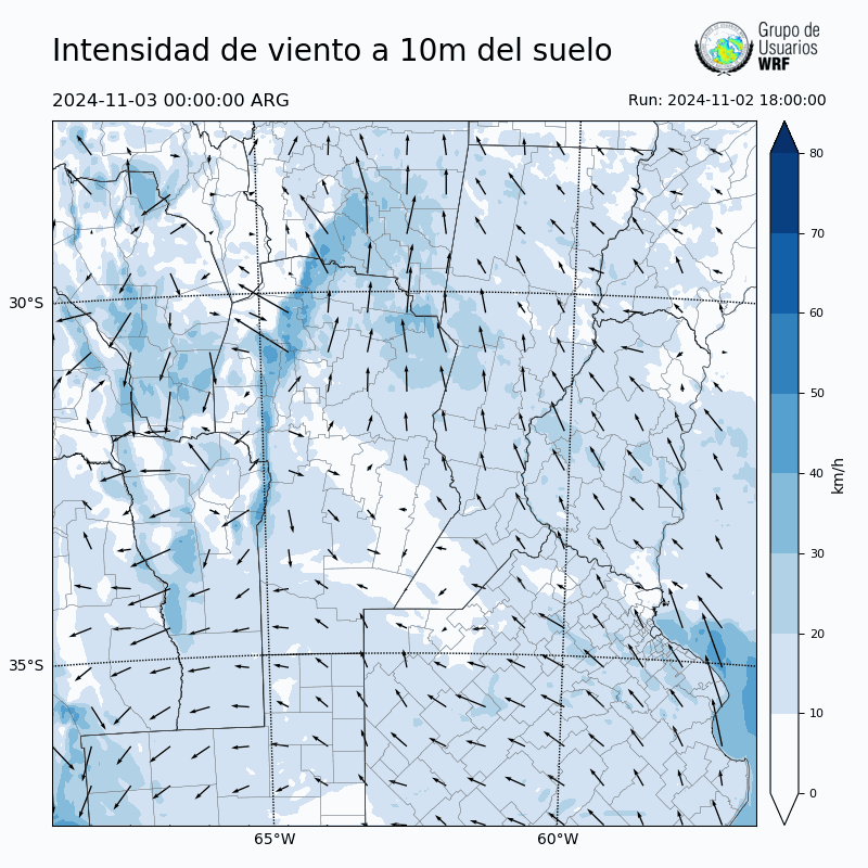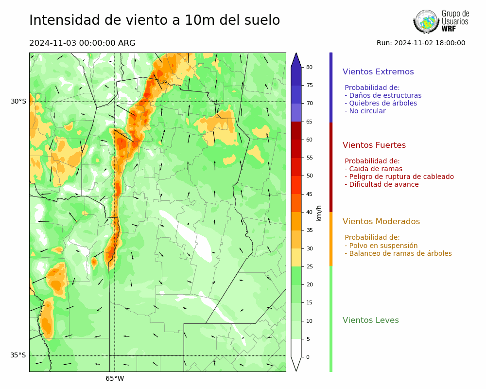 • Intensidad máxima: 2.40 km/h (03/11/2024 23hs.)