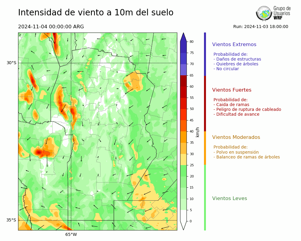 • Intensidad máxima: 14.56 km/h (04/11/2024 01hs.)