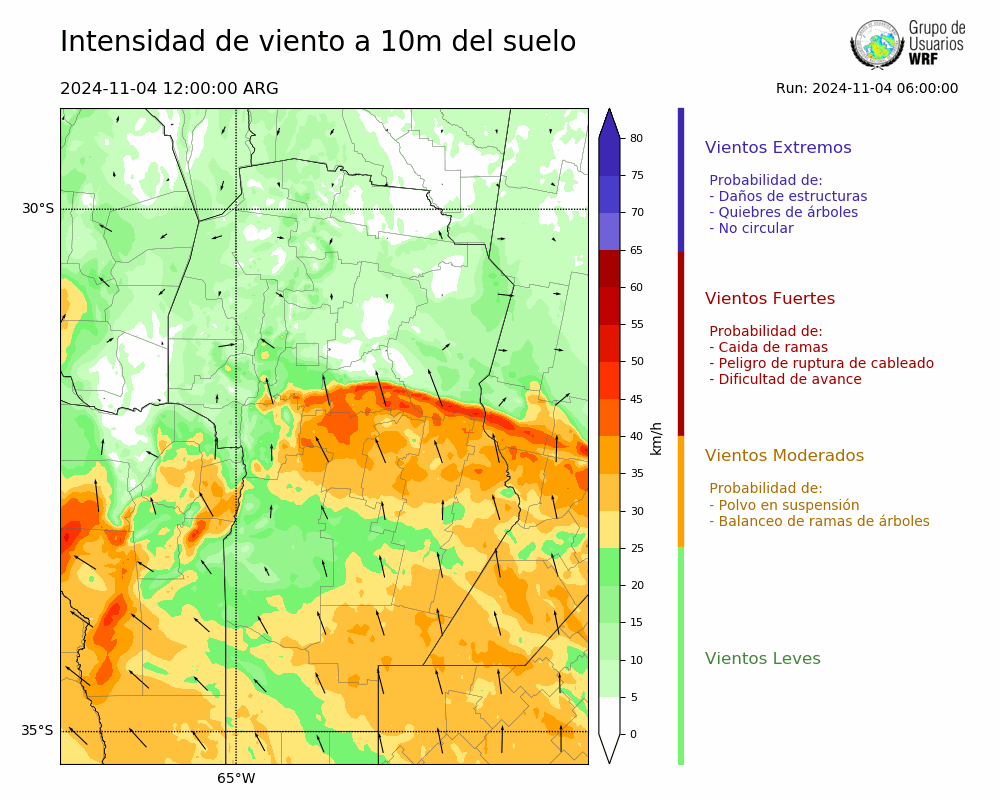 • Intensidad máxima: 25.23 km/h (04/11/2024 15hs.)