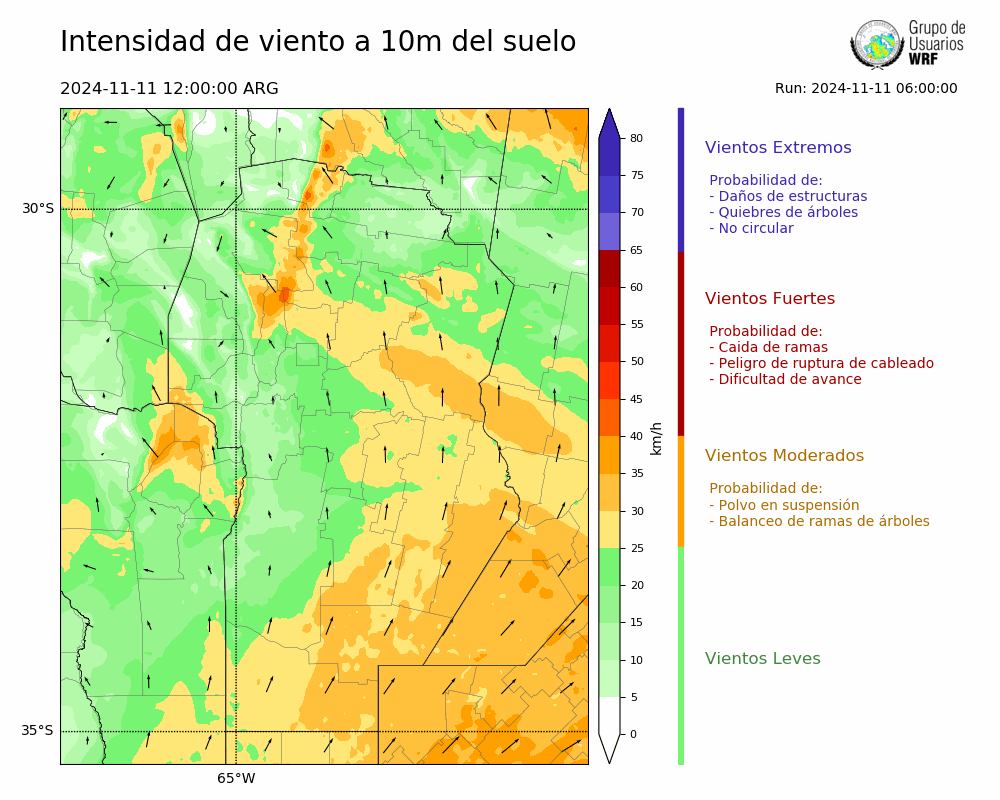• Intensidad máxima: 12.50 km/h (12/11/2024 11hs.)