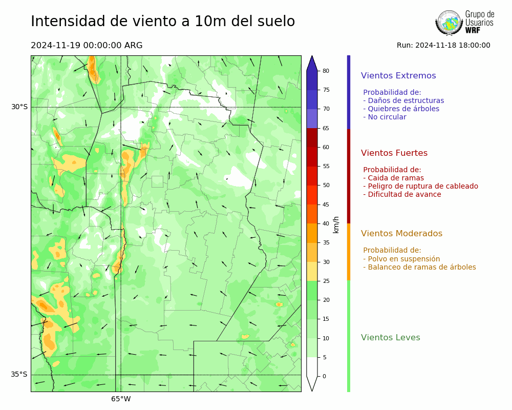• Intensidad máxima: 9.11 km/h (19/11/2024 04hs.)
