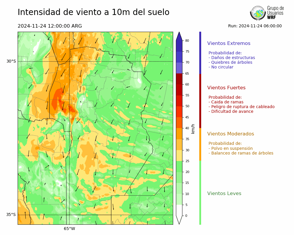 • Intensidad máxima: 8.57 km/h (24/11/2024 12hs.)