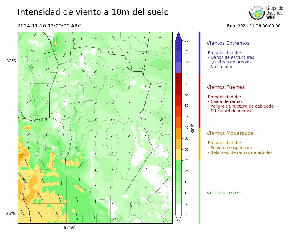 • Intensidad máxima: 15.47 km/h (26/11/2024 17hs.)