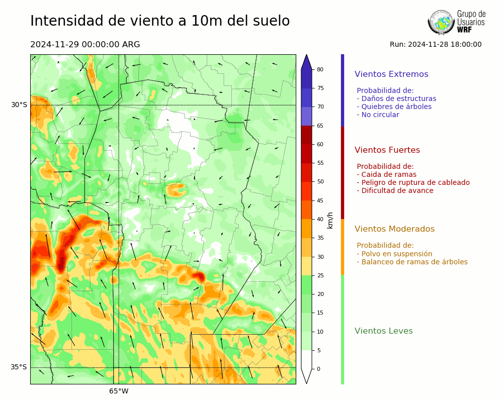 • Intensidad máxima: 32.20 km/h (29/11/2024 04hs.)