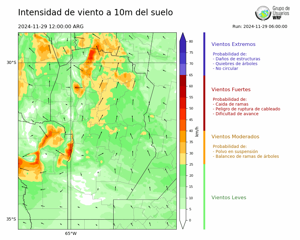 • Intensidad máxima: 20.68 km/h (29/11/2024 15hs.)