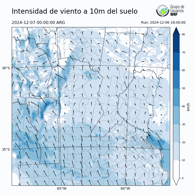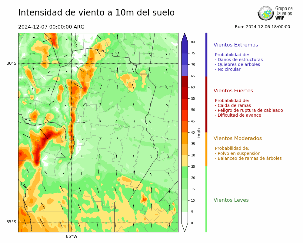 • Intensidad máxima: 33.81 km/h (07/12/2024 04hs.)