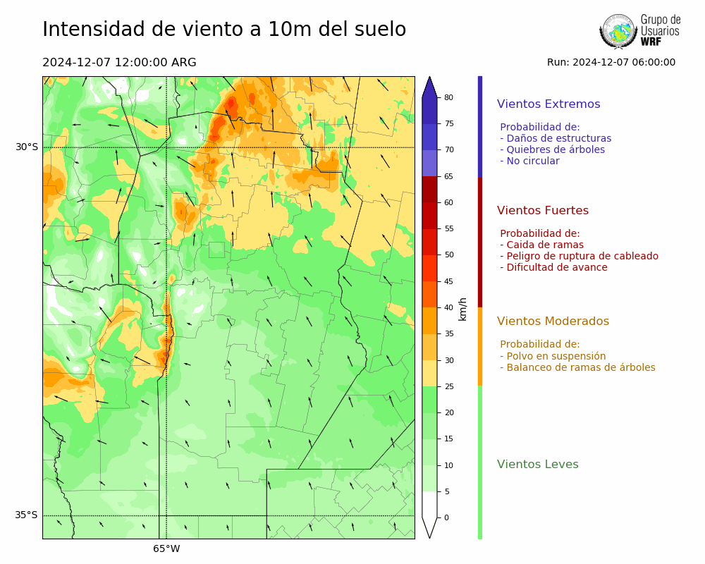• Intensidad máxima: 7.25 km/h (09/12/2024 09hs.)