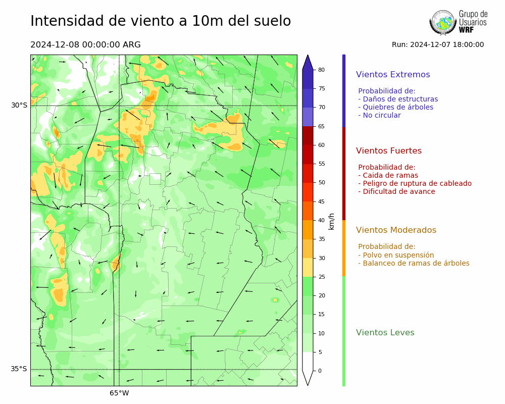 • Intensidad máxima: 23.52 km/h (08/12/2024 11hs.)