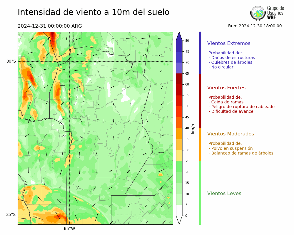 • Intensidad máxima: 15.96 km/h (31/12/2024 11hs.)