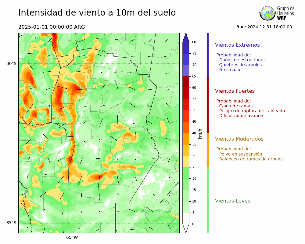 • Intensidad máxima: 26.53 km/h (01/01/2025 05hs.)