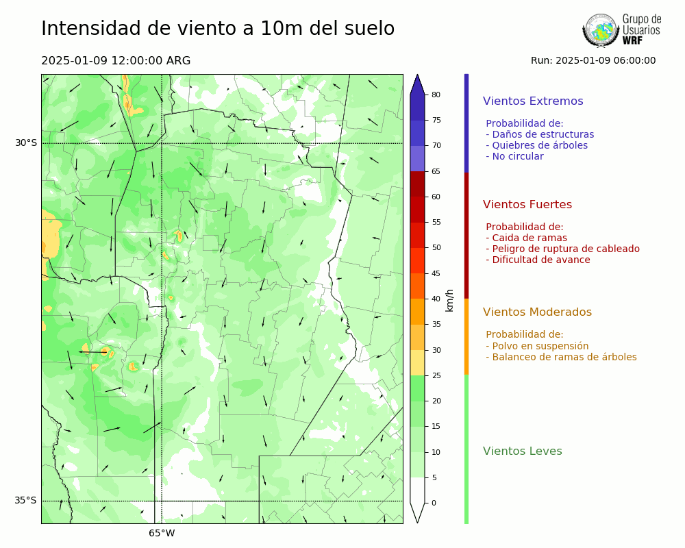 • Intensidad máxima: 8.02 km/h (10/01/2025 05hs.)