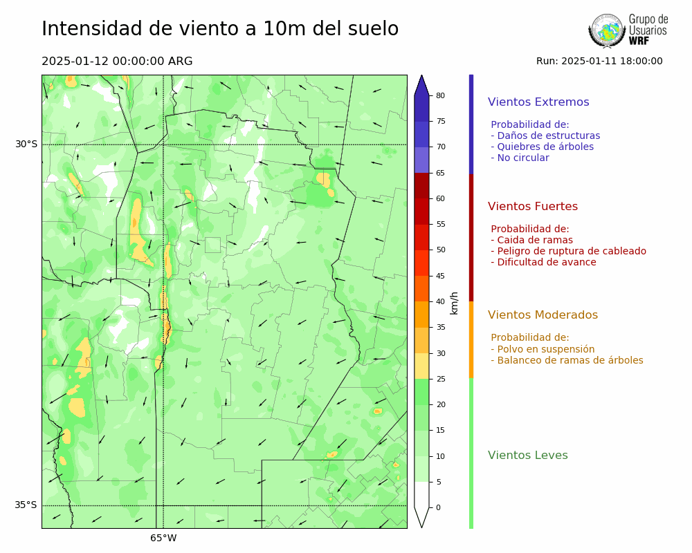 • Intensidad máxima: 8.50 km/h (12/01/2025 00hs.)