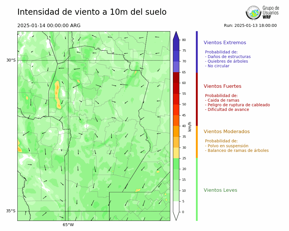 • Intensidad máxima: 8.83 km/h (14/01/2025 06hs.)