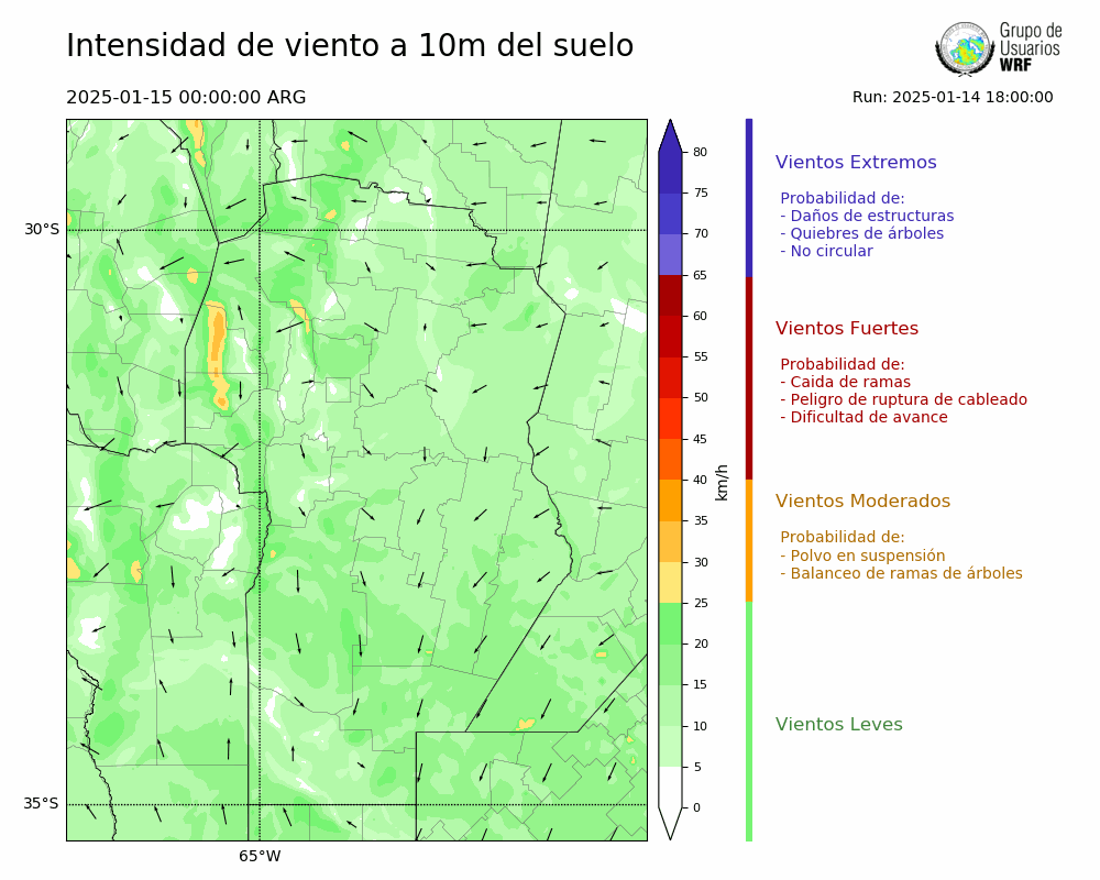 • Intensidad máxima: 9.50 km/h (15/01/2025 02hs.)