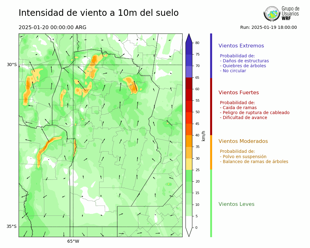 • Intensidad máxima: 14.54 km/h (20/01/2025 00hs.)