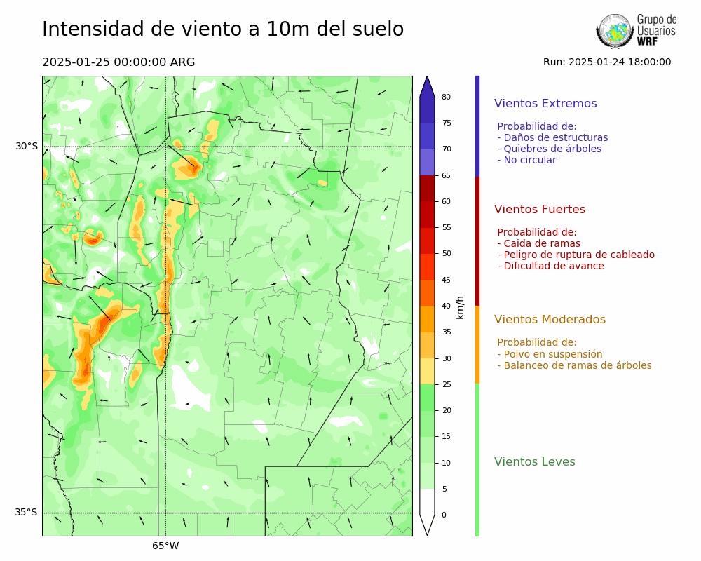 • Intensidad máxima: 18.03 km/h (25/01/2025 06hs.)