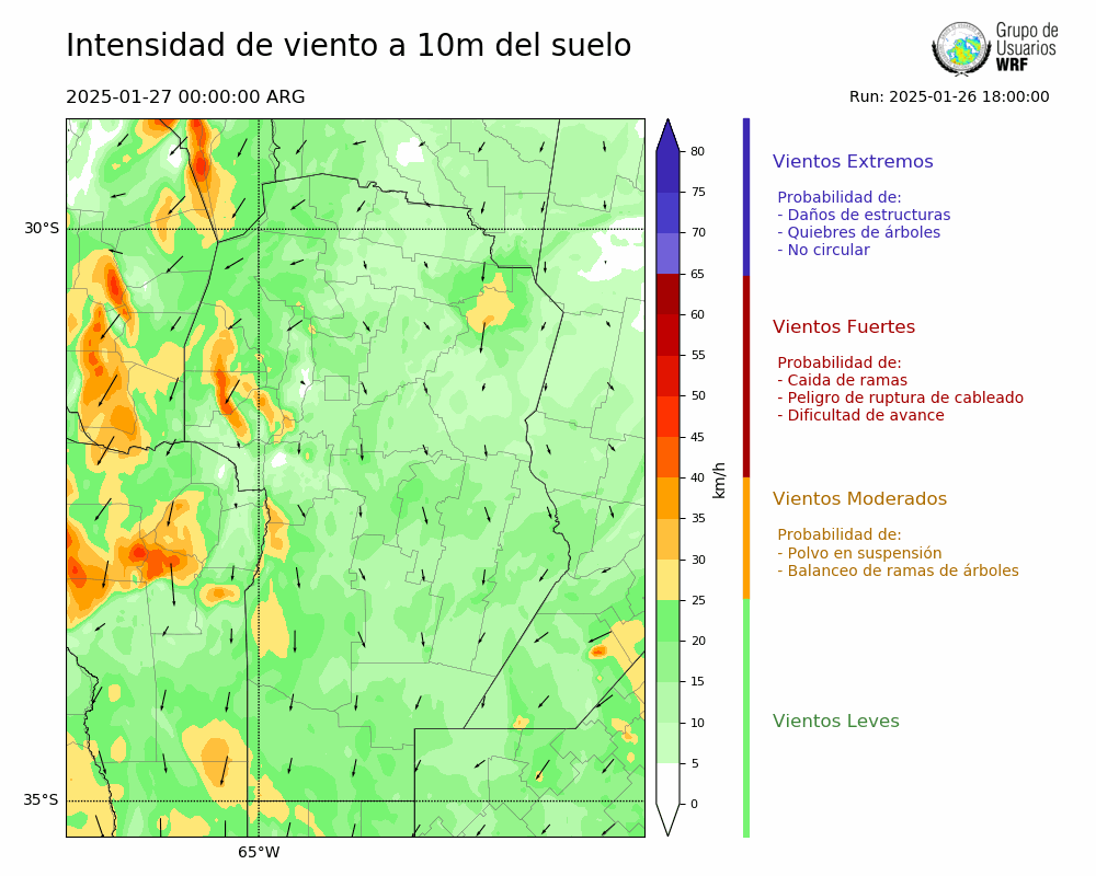 • Intensidad máxima: 18.75 km/h (27/01/2025 11hs.)