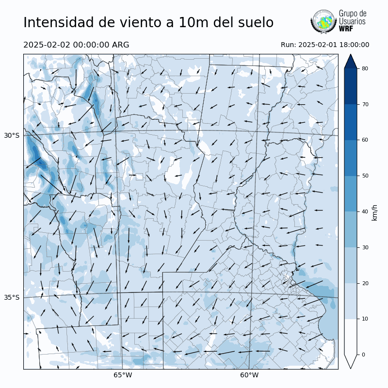 • Intensidad máxima: 19.53 km/h (02/02/2025 11hs.)