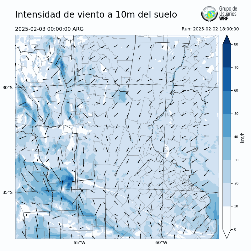 • Intensidad máxima: 12.96 km/h (05/02/2025 04hs.)
