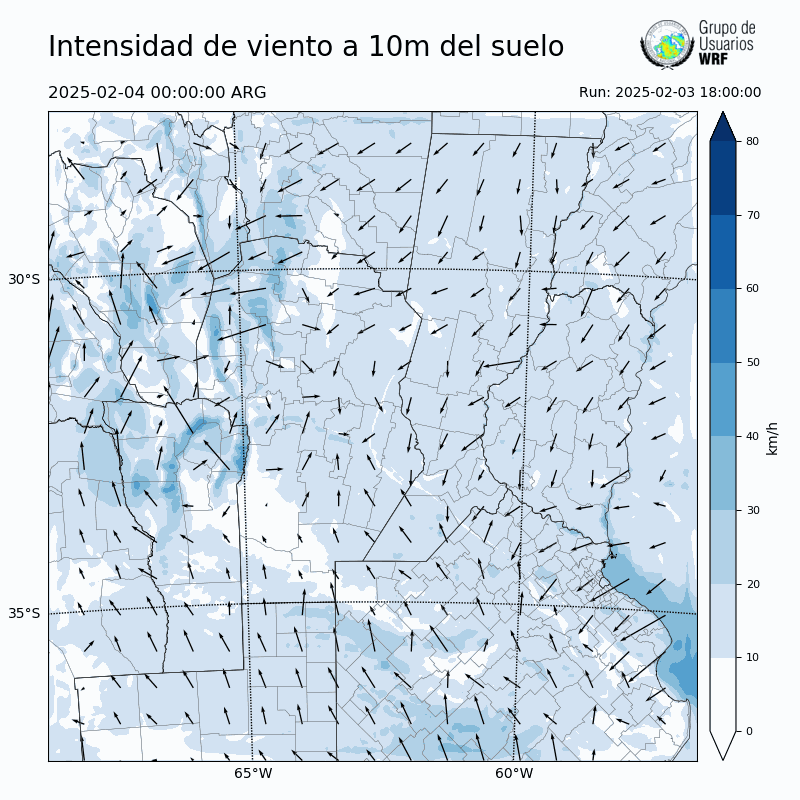 • Intensidad máxima: 18.05 km/h (04/02/2025 03hs.)