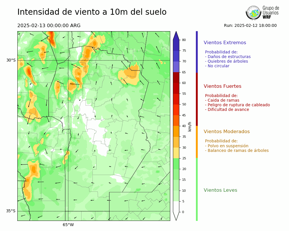 • Intensidad máxima: 8.77 km/h (14/02/2025 10hs.)