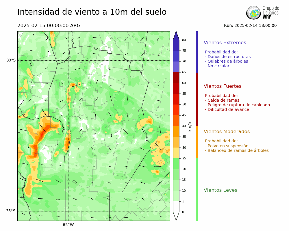 • Intensidad máxima: 13.15 km/h (15/02/2025 00hs.)