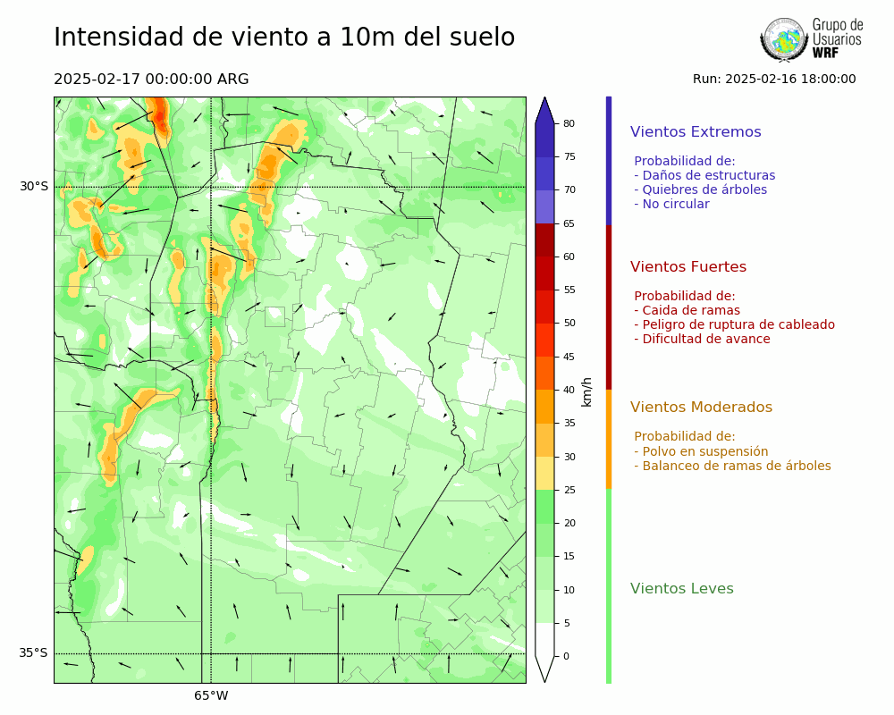 • Intensidad máxima: 8.19 km/h (17/02/2025 07hs.)