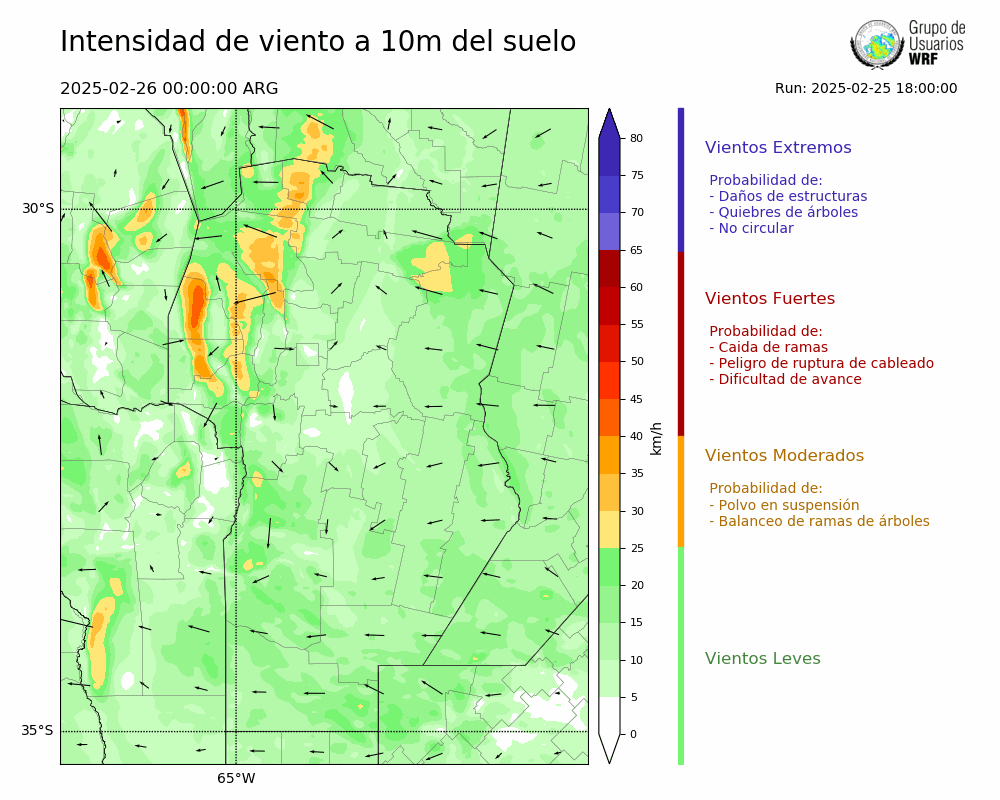 • Intensidad máxima: 10.09 km/h (26/02/2025 06hs.)